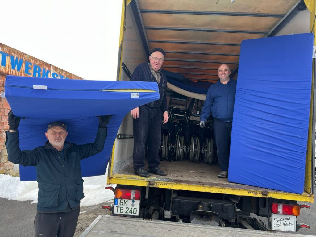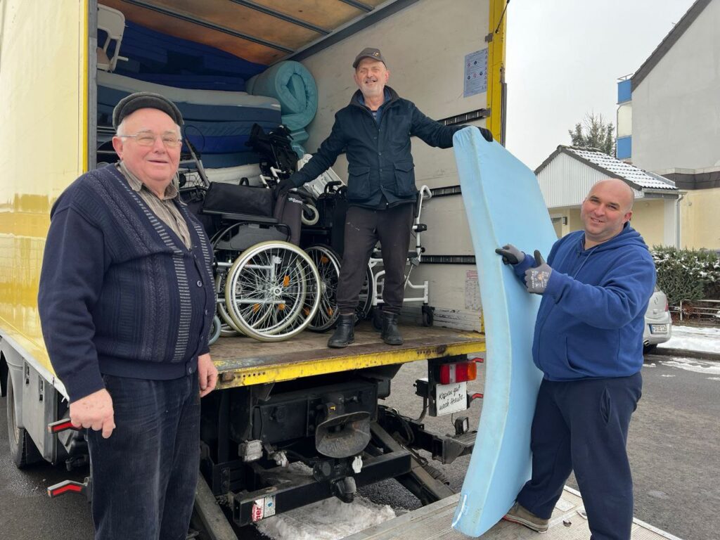 Am Donnerstag, des 05.02.2026, durften unsere Mitarbeiter Abram F., Viktor T., und Fedr G., sich schon früh auf dem Weg machen, um medizinische Geräte, Rollstühle, Rollatoren, Krankenbetten und weitere Sachen aus Fulda zu holen. Wir staunen immer wieder, wie viel Sachspenden wir über Andreas V. vom Sanitätshaus erhalten dürfen, Gott sei Dank!