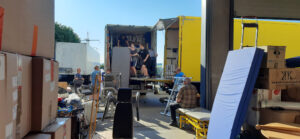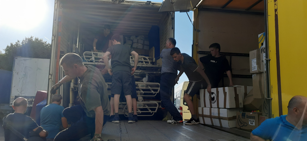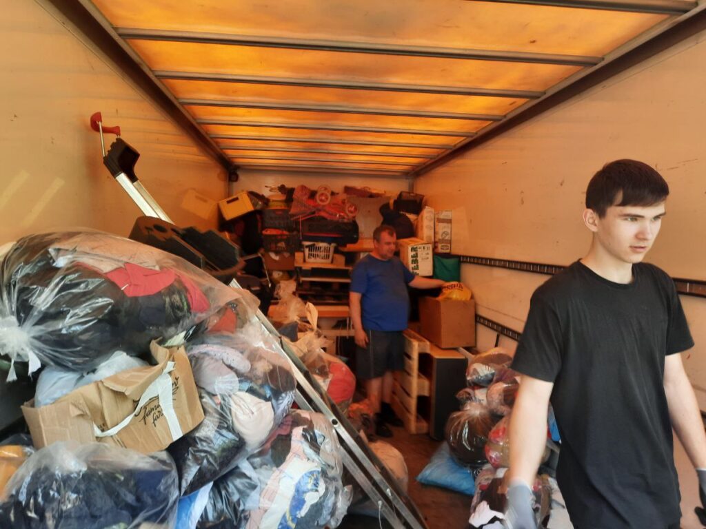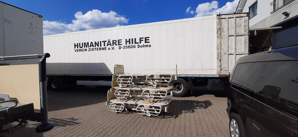Es konnten viele Krankenbetten, Rollstühle, Industrie-Waschmaschinen aus Schmallenberg und andere Wertsachen beladen werden. Eine Gemeinde aus Singen hatte Lebensmittel für Notleidende gespendet. Wir beten, dass die Ladung zum Segen wird.