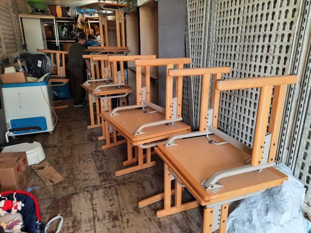 Von einer Schule bei Wiel-Bomig wurden Tische und Stühle abgeholt, die an Schulen in die Ukraine gehen…
