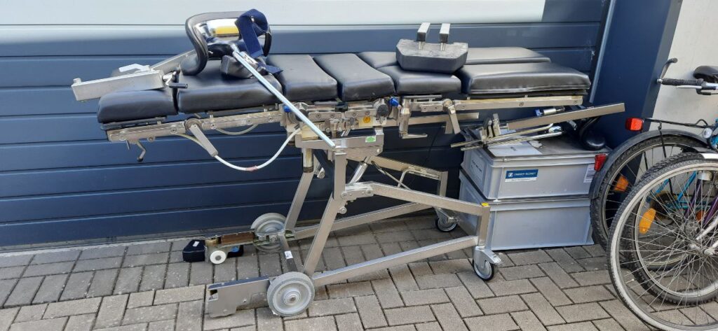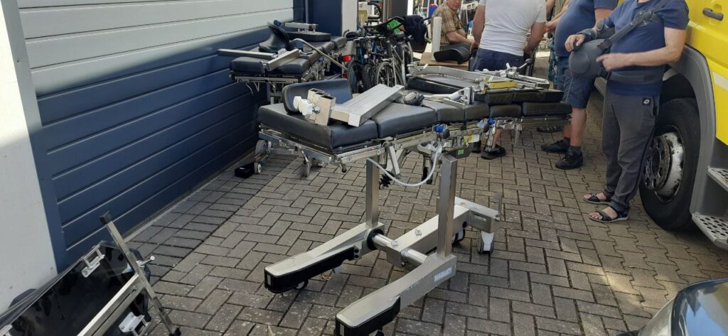 Vom Krankenhaus in Lennesadt bei Olpe, konnten OP-Tische abgeholt werde. Sie sind mechanisch, so dass man ohne Strom arbeiten kann. Gerade diese Eigenschaft macht sie um so wertvoller.