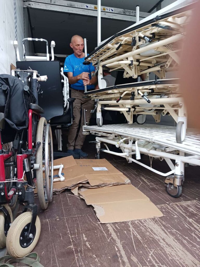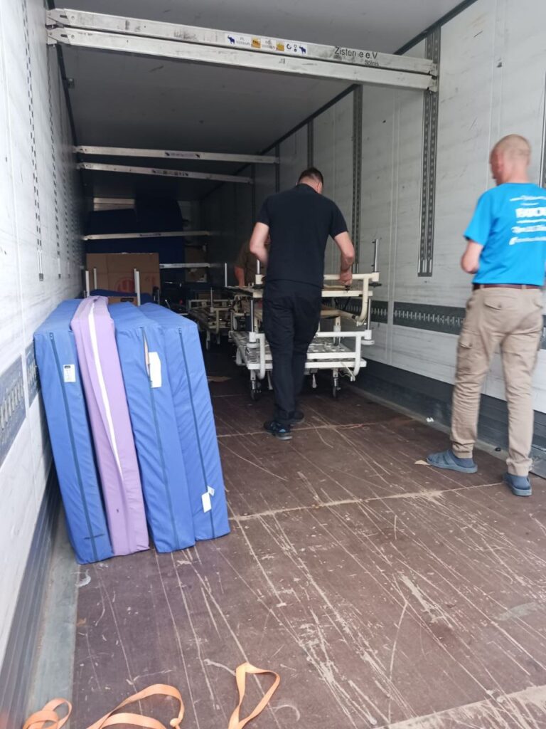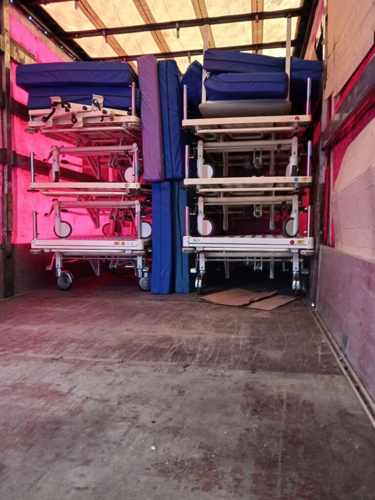 (Eugen F.) Haben heute in einem Transporter die Krankenbetten und andere Sachen für das Krankenhaus umgeladen. Die Mitarbeiter vor Ort werden diese Sachen in die Krankenhäuser anliefern.
