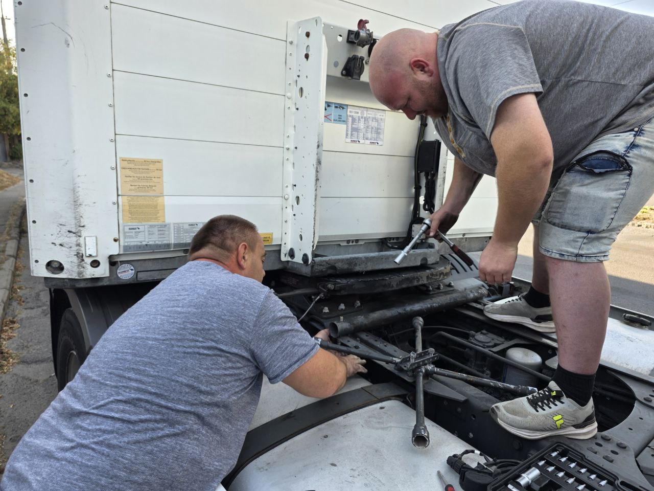 (Eugen F.) Bei dem 12 Tonner sind wir noch mit dem Service dran. Es werden noch einige Sachen gemacht. Danke für die Gebete!