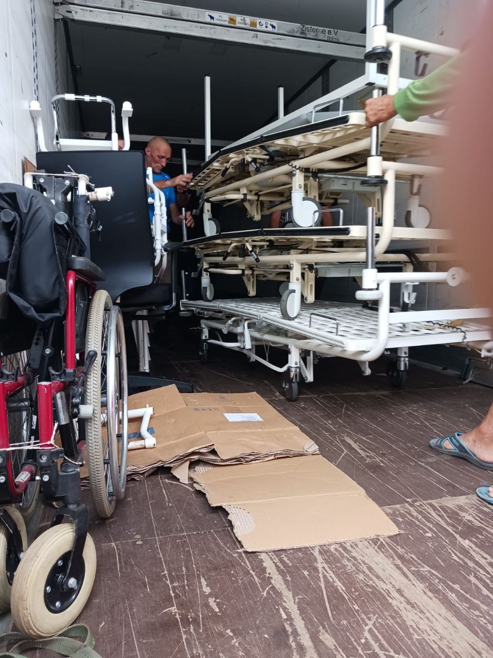 (Eugen F.) Haben heute in einem Transporter die Krankenbetten und andere Sachen für das Krankenhaus umgeladen. Die Mitarbeiter vor Ort werden diese Sachen in die Krankenhäuser anliefern.
