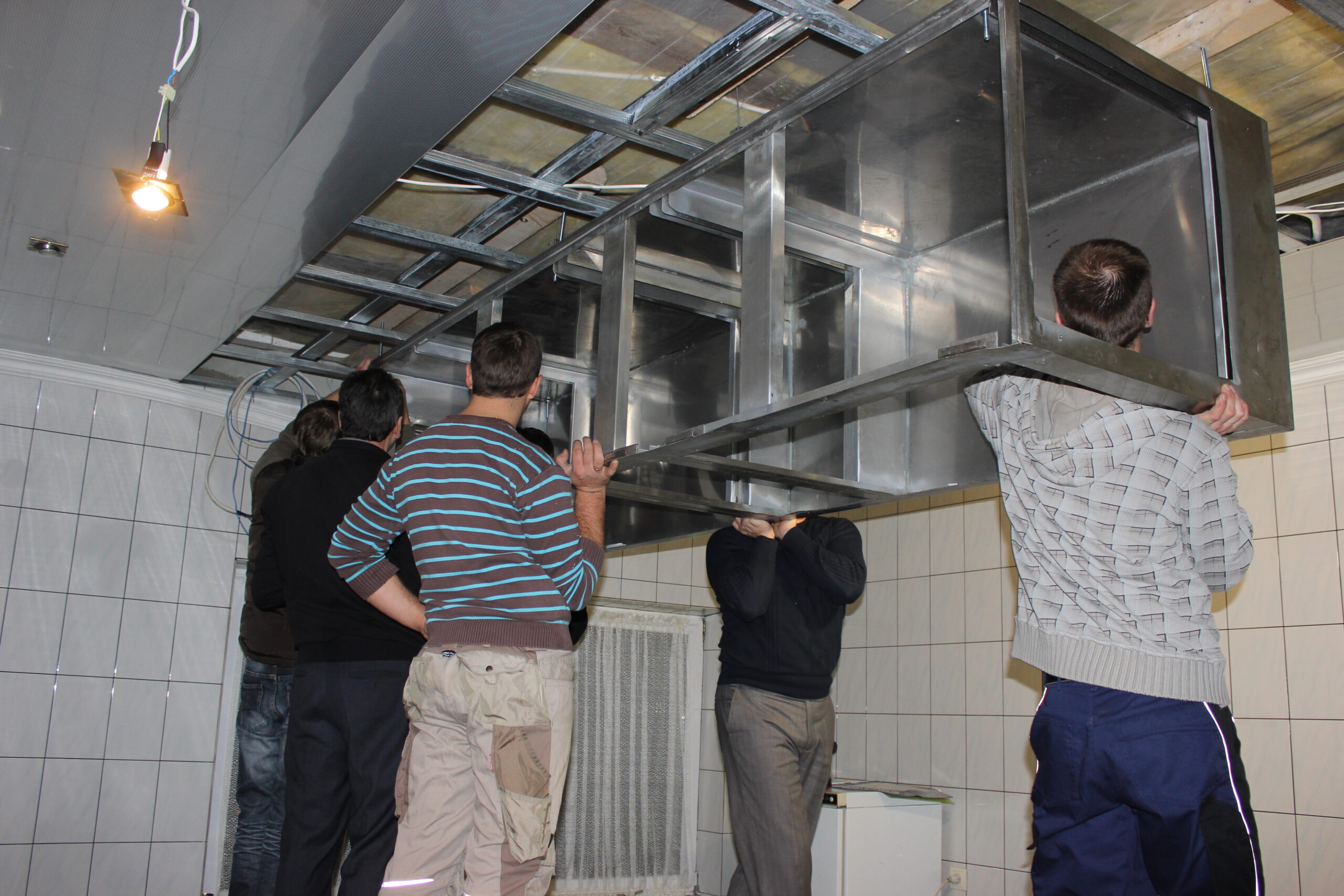 9 Einbau der Abzugshaube im Bethaus in Borislav